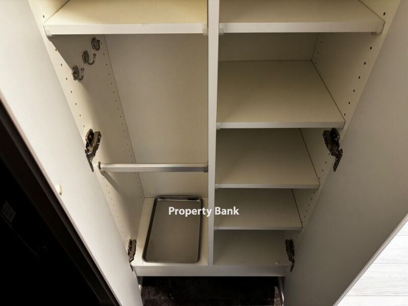 収納も豊富で、各部屋にクローゼットが備え付けられています。室内には洗濯機置き場があり、家事動線もスムーズです。キッチンはシステムキッチンを採用し、料理好きの方にも嬉しい設備が整っています。ガスコンロ対応で火力も十分です。
