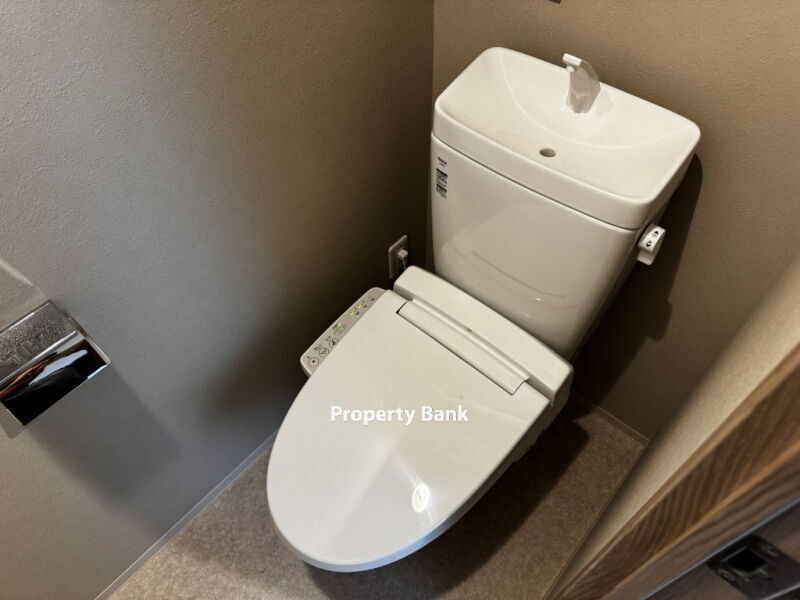 バスルームはバストイレ別で、浴室乾燥機や24時間換気システムが付いており、湿気対策も万全です。洗面所は独立しており、洗面化粧台や脱衣所、洗面所にドアも設けられており、プライバシーに配慮しています。トイレには温水洗浄便座が設置されています。
