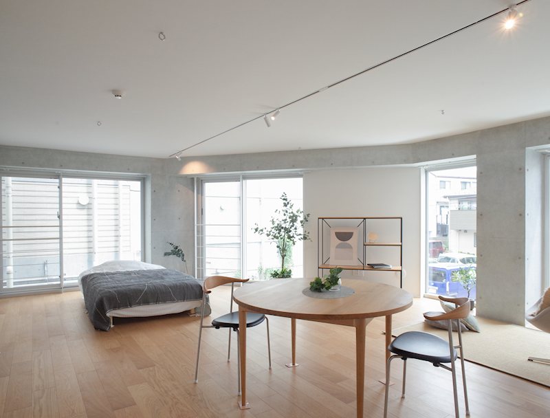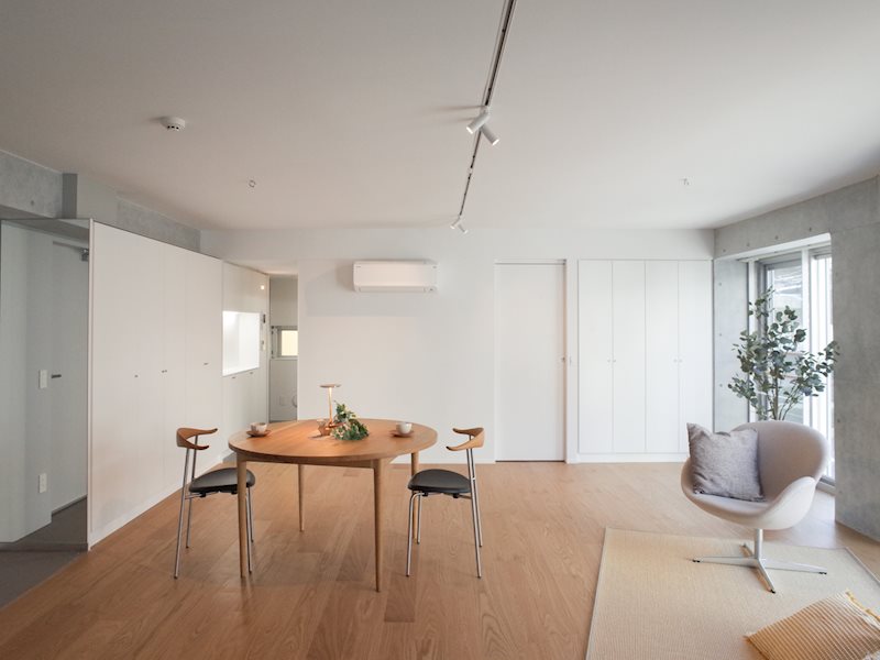 1階の店舗・事務所を含め総戸数は9戸、住居は2階からで1フロア2世帯、全住戸角部屋で独立性と採光性に優れた設計です。専有面積51.23平米~77.48平米、1K・1LDKの全4タイプの間取りを揃えています。最上階の2部屋は天井が高く開放感あるメゾネットタイプです。スポットライトや一部壁に用いられたコンクリート打ち放しがお洒落な雰囲気を演出しています。ガスシステムキッチンや追焚、浴室乾燥機、独立洗面化粧台、タンクレストイレ、エアコンなど設備も充実しています。浴室乾燥機の他にスピード乾燥が可能なガス衣類乾燥機も備えられており家事の時短が可能です。