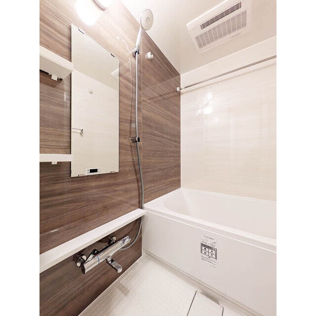 お部屋の設備も充実しており、システムキッチンには使い勝手の良いコンロが設置されています。バスルームとトイレは独立しており、追焚機能付きバスや浴室乾燥機、温水洗浄便座など最新の設備が揃っています。独立洗面所もあり、朝の準備も快適です。