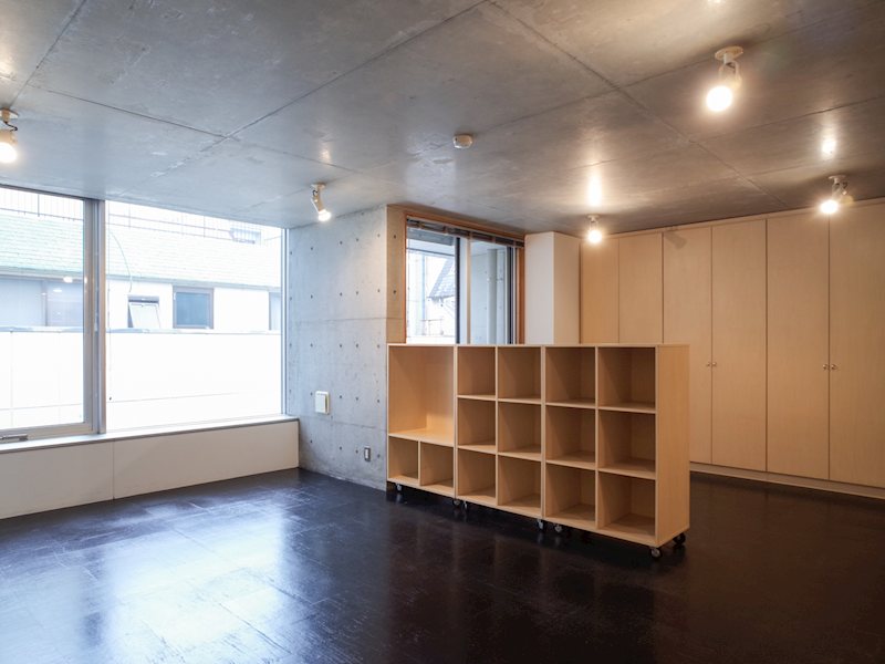 吹抜けによる円形の共用廊下、打ちっぱなしのコンクリート、スポットライト、木目調の扉や収納など、共用部きあら室内にいたるまでデザイナーズマンションならではの大変凝った作りとなっています。ガスシステムキッチン・追焚バス・浴室乾燥機・洗浄便座・エアコン・床暖房といった充実した室内設備を揃えており、デザイン性だけではなく日々の生活の快適性も追求した作りになっています。