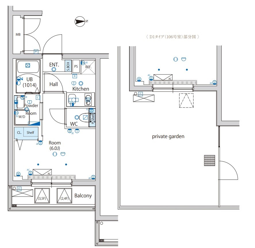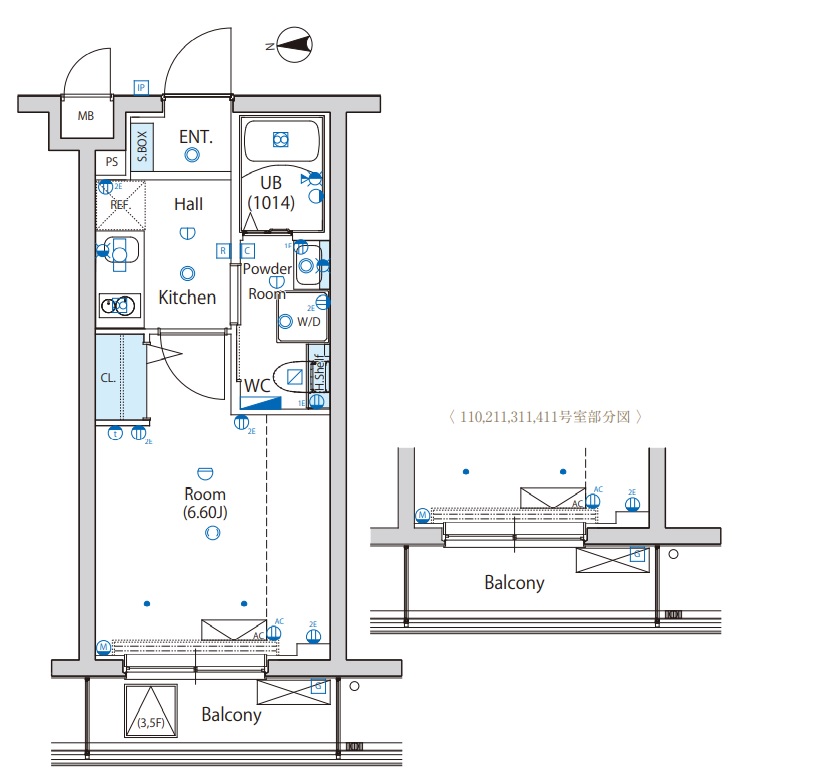 | 間取り | 1K | 面積 | 21.54㎡ - 21.80㎡ |