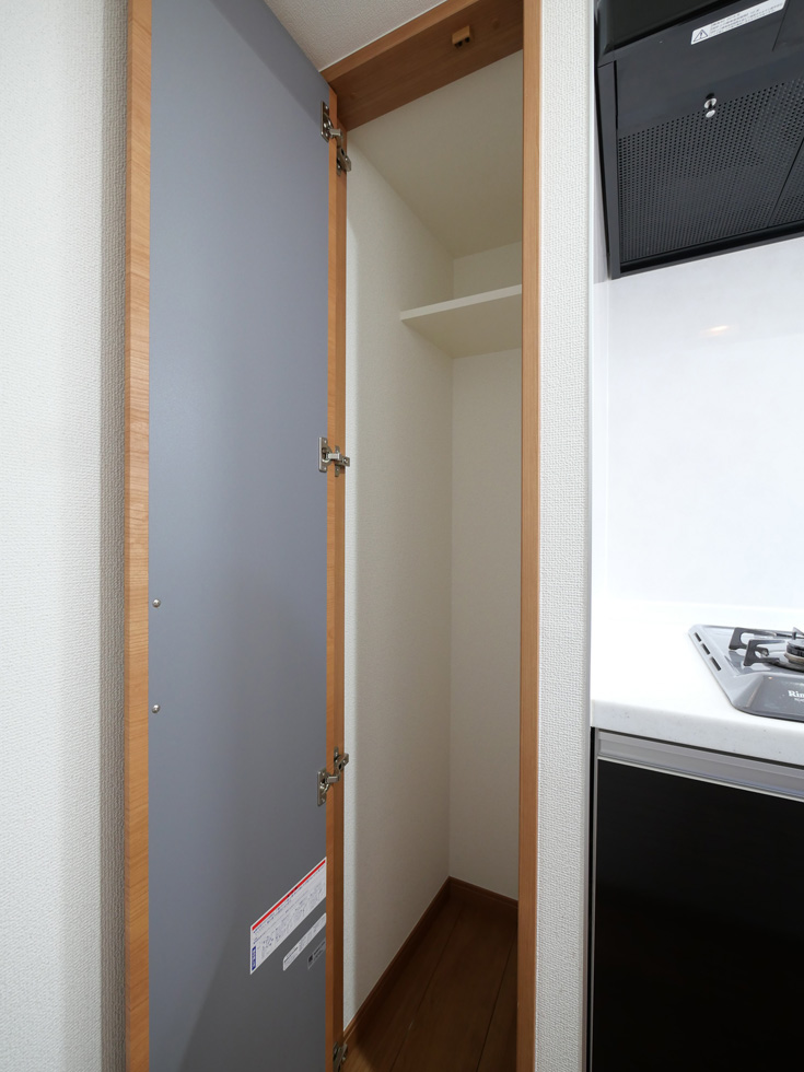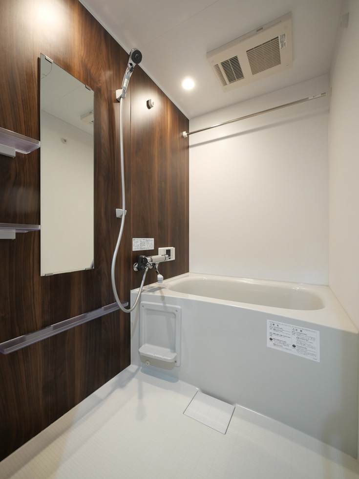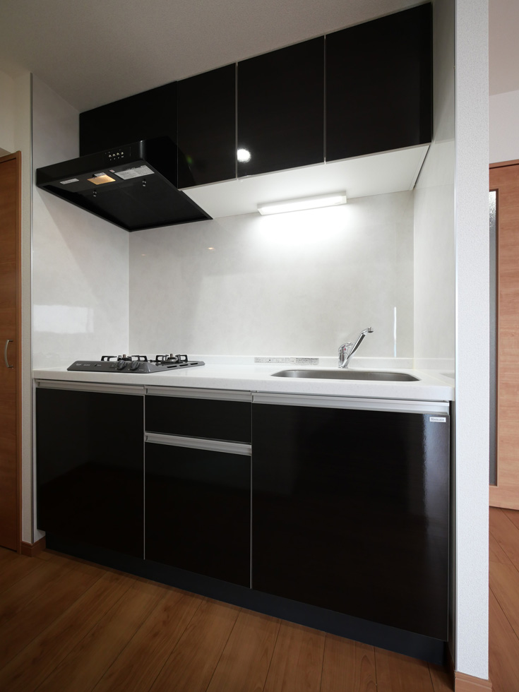 共用設備として夜遅くにお帰りの方にも便利な24時間対応ゴミ置き場や宅配ボックスを備えています。住戸共通設備はガスシステムキッチン・独立洗面台・浴室乾燥機・洗浄便座・エアコンで、更に1LDKには追焚バスが備えられており、充実した室内設備が居住者の快適な生活をサポートします。