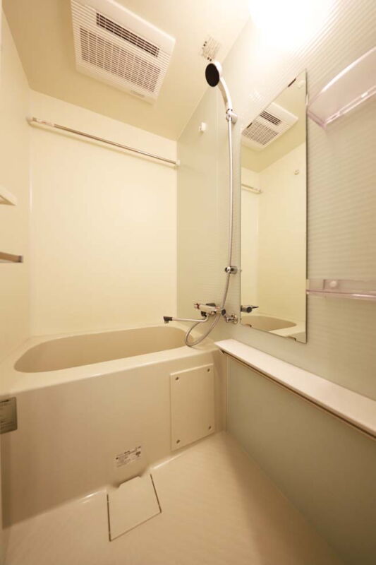 お部屋の設備も充実しており、システムキッチンには2口ガスコンロを完備し、料理の幅が広がります。バス・トイレ別のユニットバスには、温水洗浄付き暖房便座や浴室換気乾燥機が設置されており、快適なバスタイムをサポートします。室内洗濯機置場や独立洗面台も備えており、生活動線がスムーズです。